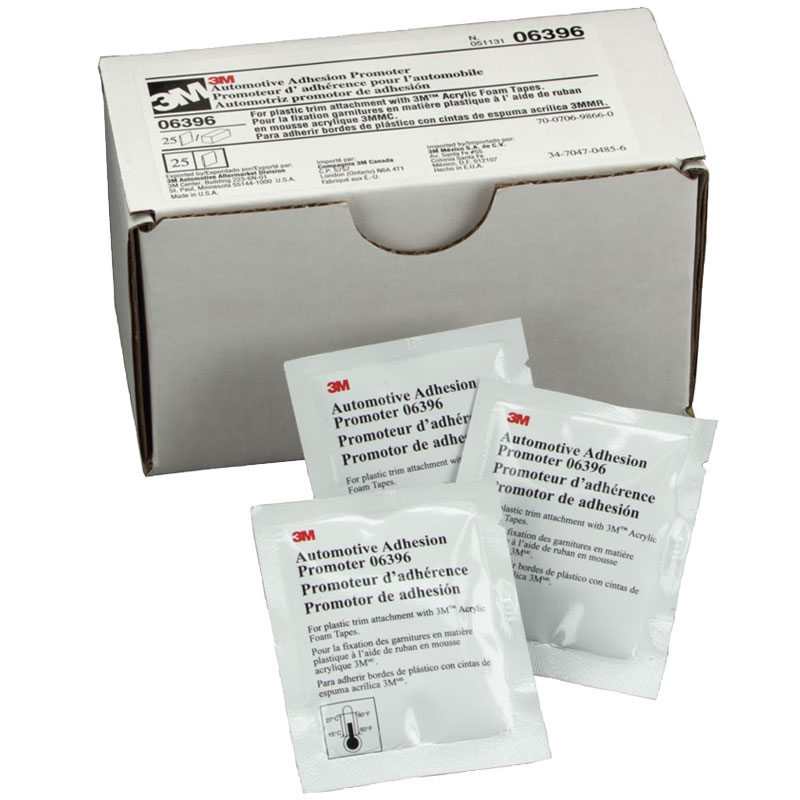 3M Adhesion Promoter 06396 is a liquid primer used for most low surface energy plastics. This would include common low surface energy plastics used for automotive dash and interior trim applications (TPO, PPO, PP, PC, PC + ABS, etc.). 25 Individual Packages per Box.