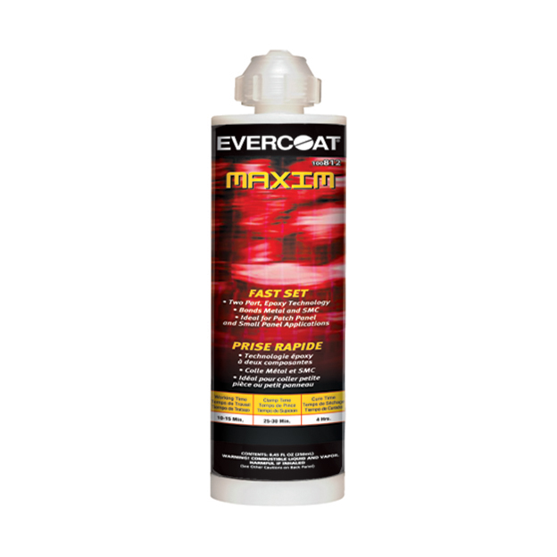 Maxim™ Fast Set Bonding Adhesive est utilisé dans le remplacement des revêtements de porte, des toits, des ailes, des ridelles de camions, des côtés des véhicules utilitaires et d’autres panneaux non structurels. Maxim™ Fast Set Bonding Adhesive adhère très bien à l’acier nu, l’acier galvanisé, l’aluminium et les panneaux peints par électrodéposition. Maxim™ Fast Set Bonding Adhesive est livré avec une garantie à vie offerte par Evercoat.